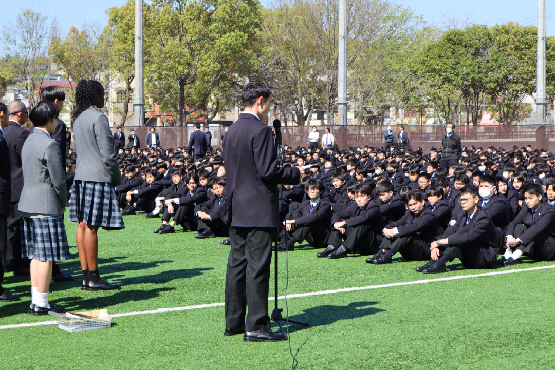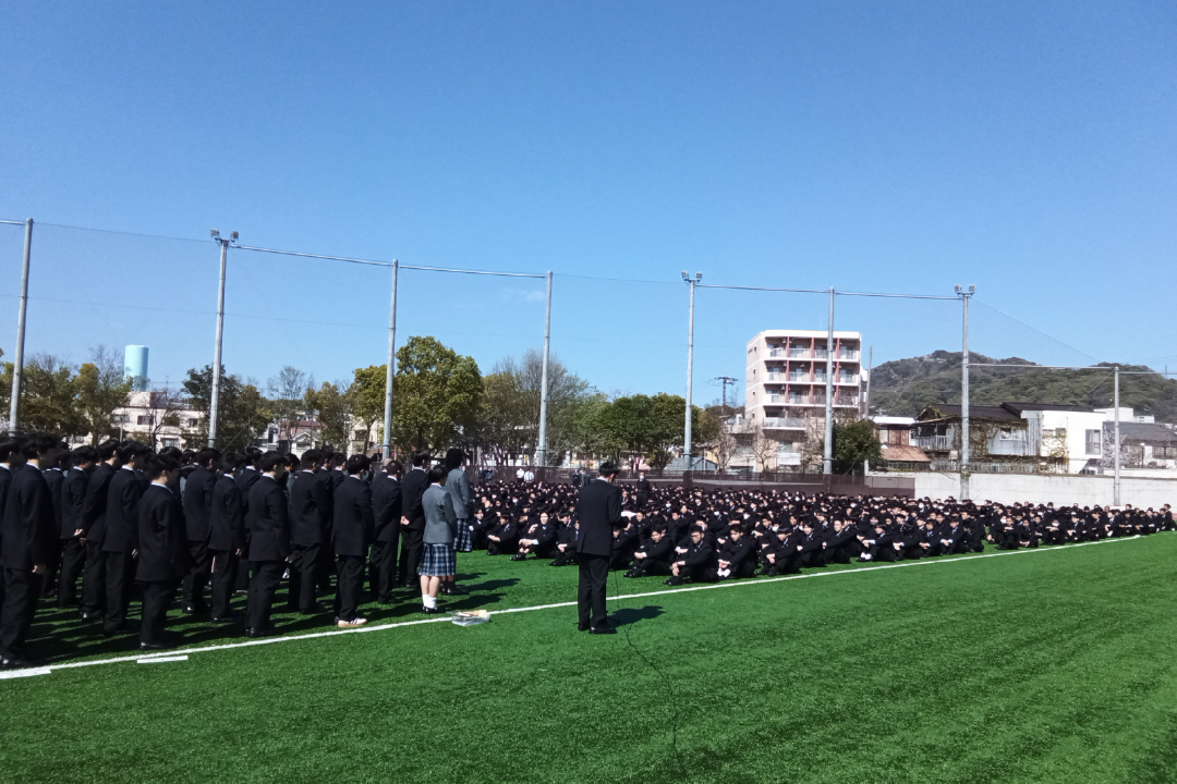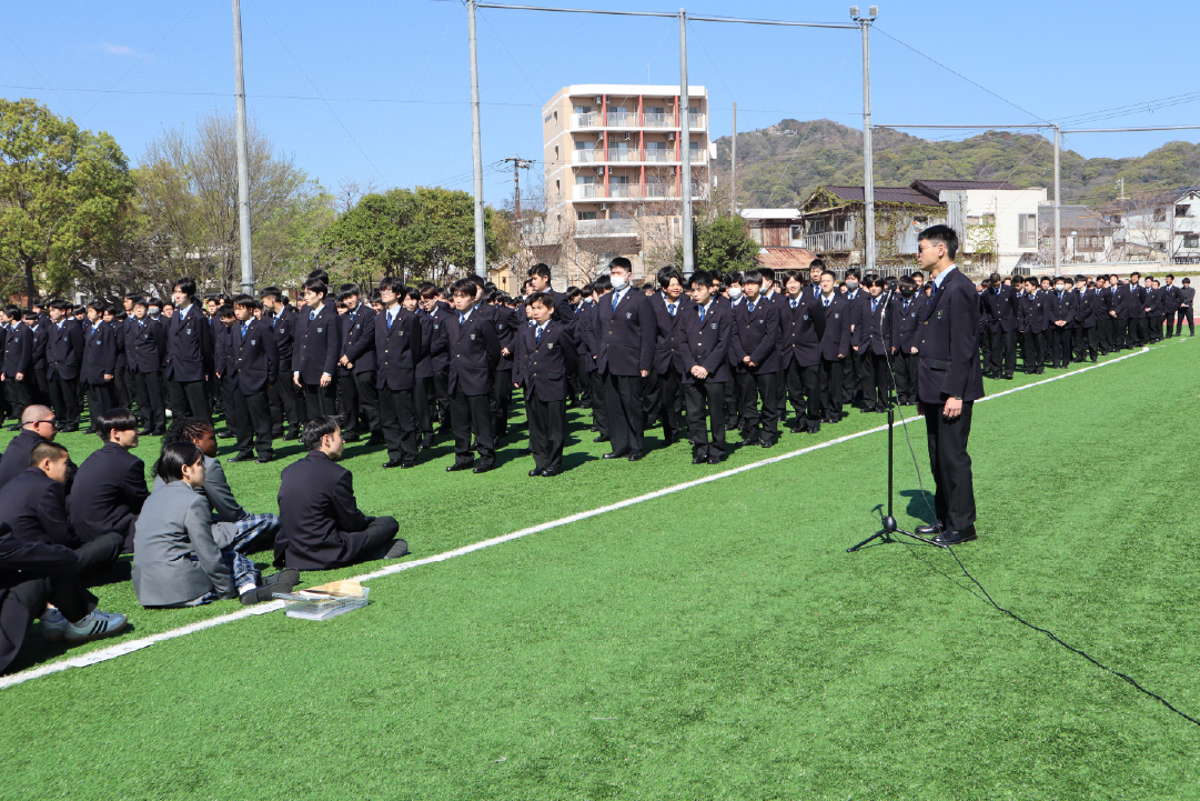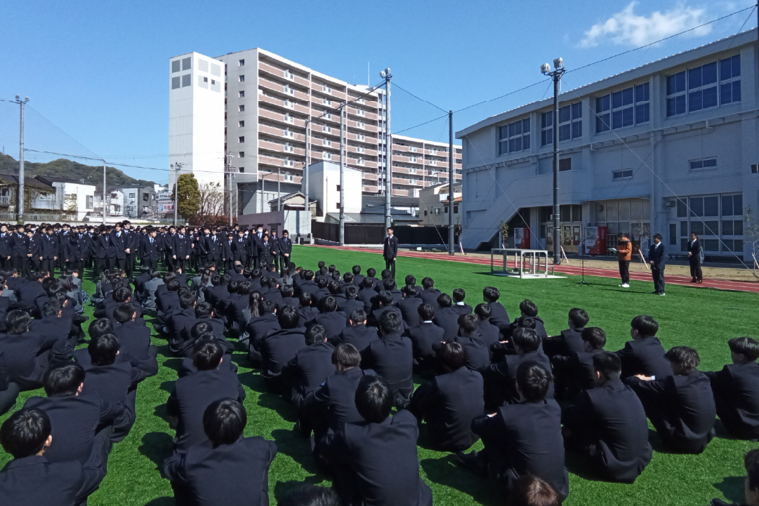 対面式を行いました(令和8年度) 2026年4月15日行事 先日、彩星工科高等学校の対面式が行われました。 天候がよく、グラウンドで実施することができました。在校生と入学生代表が歓迎と挨拶の言葉を述べました。